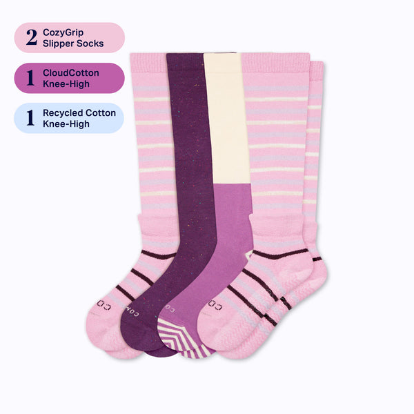CozyGrip Compression Slipper Socks - Purple/Pink